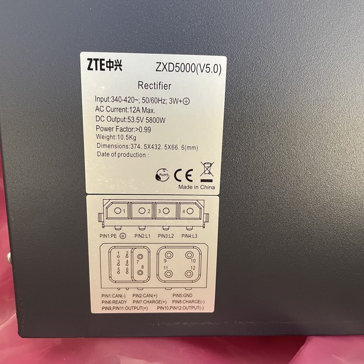 ZXD5000直流器は直流器ラック (RECR) に設置され,先進的なスイッチング直流器技術を使用し,指定入力3相AC 380VAC,指定出力6kWである.直流器のピーク効率は96以上0.2%